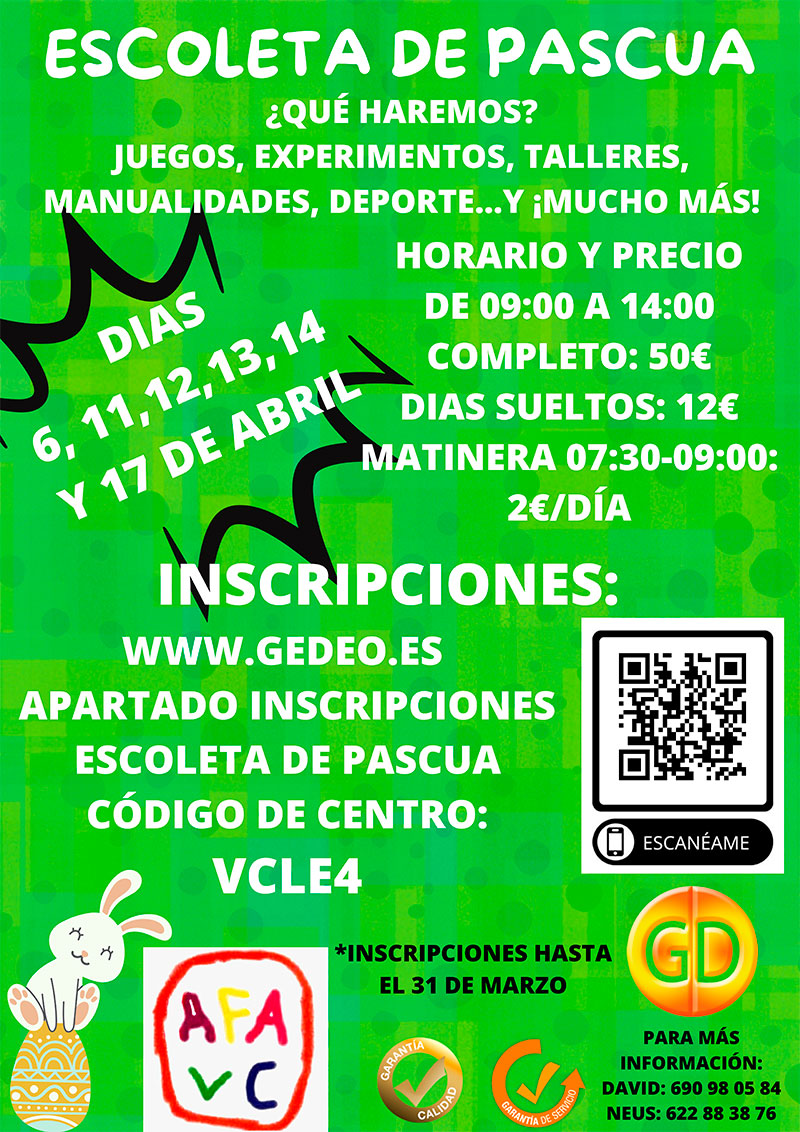 Escuelas de vacaciones La Asociacion de Familias coordina y organiza la realización de Escuelas durante los periodos vacacionales para ayudar a la conciliación familiar.
