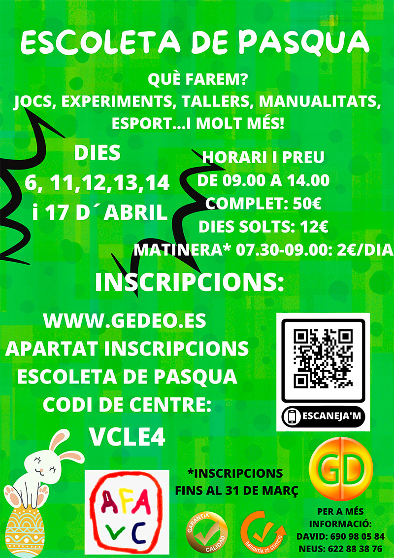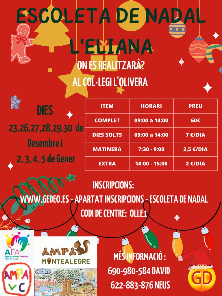 L’ Associació de famílies coordina i organitza la realització d’escoles durant els períodes vacacionals per a ajudar a la conciliació familiar.